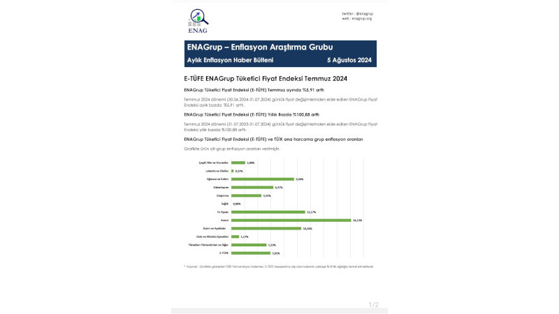 ENAG verilerine göre temmuz ayında E-TÜFE yüzde 5,91 oranında artış gösterdi.