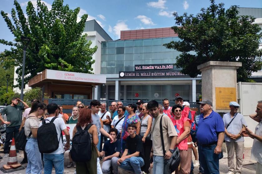 İzmir Karabağlar’da bulunan Vali Nevzat Ayaz Anadolu Lisesi Okul Aile Birliği, veliler ve öğrenciler yıkılıp yeniden yapılan okullarının Yunus Emre Anadolu İmam Hatip Lisesine verilmemesi için İl Milli Eğitim Müdürlüğü önünde açıklama yaparak topladıkları imzaları Müdürlüğe teslim etti.