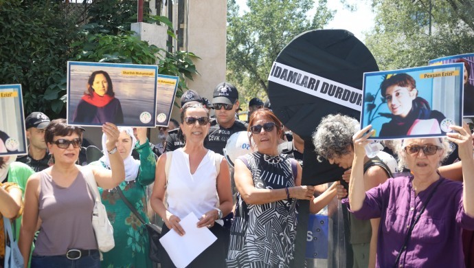 Halkların Eşitlik ve Demokrasi Partisi Kadın Meclisi, İran’daki idamlara tepki göstermek amacıyla İran Büyükelçiliği önünde bir araya geldi. Ancak burada açıklama yapmak isteyen kadınlara polis engel olmak istedi. Polislere tepki gösteren kadınlar, İsrail Büyük Elçiliği önünde yapılan açıklamaları hatırlattı. Israr ve tepkilerine rağmen elçilik binasının önüne gitmelerine izin verilmeyen kadınlar, İran tarafından idam edilen kadınların fotoğraflarıyla polis kalkanlarının önünde açıklama yaptı.