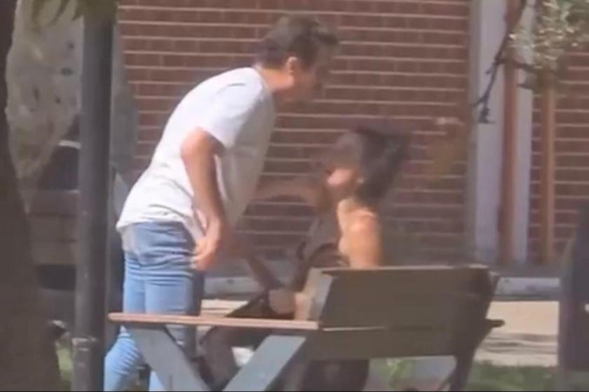 Olay, Mudanya ilçesindeki çocuk parkında meydana geldi. Parkta bir kadına sevgilisi olduğu iddia edilen erkek tarafından şiddet uygulandı. Kadının boğazını sıkarak defalarca yumruk atan erkek genç kadın çığlık atarak yardım istemesi sonucu koşarak kaçmaya çalıştı. Bu sırada yaşananları gören bir kişi, gence yumruk atarak durdurmaya çalıştı. O anlar cep telefonu kamerasına yansırken, polis şüpheliyi yakalamak için çalışma başlattı.