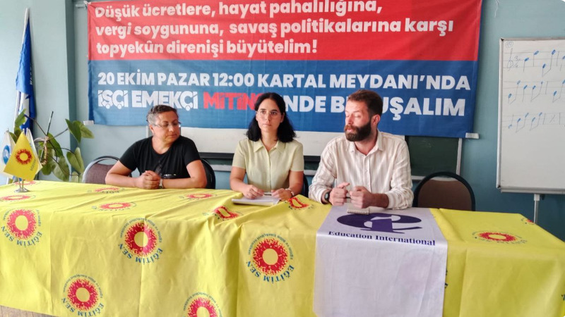 İşçi Emekçi Birliği, 20 Ekim Pazar günü Kartal meydanda “işçi emekçi” mitinginin 4.’sünü düzenliyor. Mitinge ilişkin Mecidiyeköy’de bulunan Eğitim Sen 3 Nolu Şubede basın toplantısı düzenlendi. “Düşük ücretlere, hayat pahalılığına, vergi soygununa, savaş politikalarına karşı topyekün direnişi büyütelim” şiarıyla düzenlenen basın toplantısının metnini İpek Bozkurt okudu.