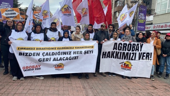 Tarım İşçileri Sendikası Başkanı Umut Karagöz ise, bu yargılamanın tarım işçilerinin sendikaya üye olma hakkının yargılanması olduğunu söyledi. Agrobay’da yıllarca zor koşullarda çalışan işçilerin direnişinin yargılandığını kaydeden Karagöz, “Bu direnişin sebebi olan, işçilerin hakları için sendikaya üye olma haklarının yargılandığı, kendi haklarını talep etme haklarının yargılandığını ifade ettik. Tarım Sen’in çağırısıyla Agrobay işçilerine destek çıkan dostlarımız yargılandı. Ama tarım işçilerinin örgütlenmesi, savunulması konusunda bu davalar, yargılamalar bizi vazgeçiremeyecek. Holdingçi yargıya karşı işçilerin, çiftçilerin, köylülerin örgütlenmesini sürdüreceğiz” şeklinde konuştu.