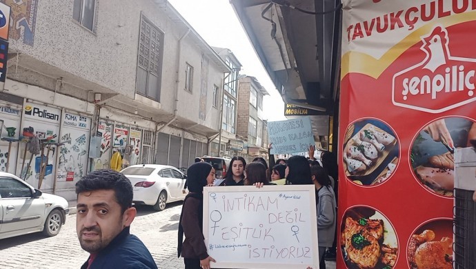 Van’ın İpekyolu ilçesinde bir grup lise öğrencisi, son dönemde artan kadın cinayetlerini protesto etti.