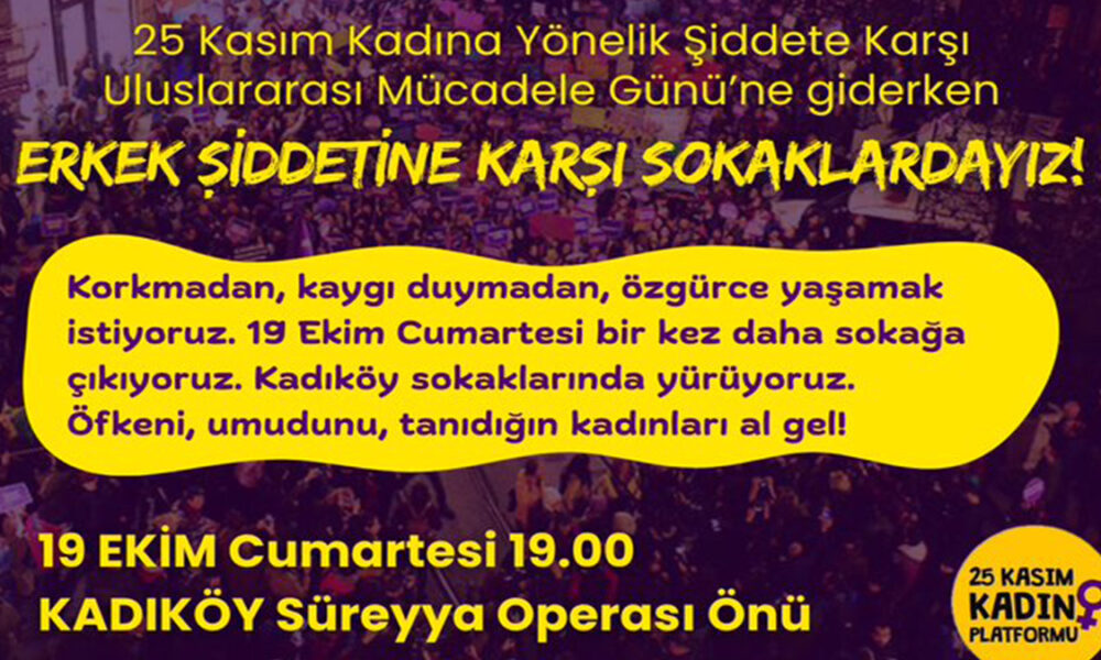 Çağrıda, “Korkmadan, kaygı duymadan, özgürce yaşamak istiyoruz! 19 Ekim Cumartesi bir kez daha sokağa çıkıyoruz, Kadıköy sokaklarında yürüyoruz. Öfkeni, umudunu, tanıdığın kadınları al gel!” denildi.