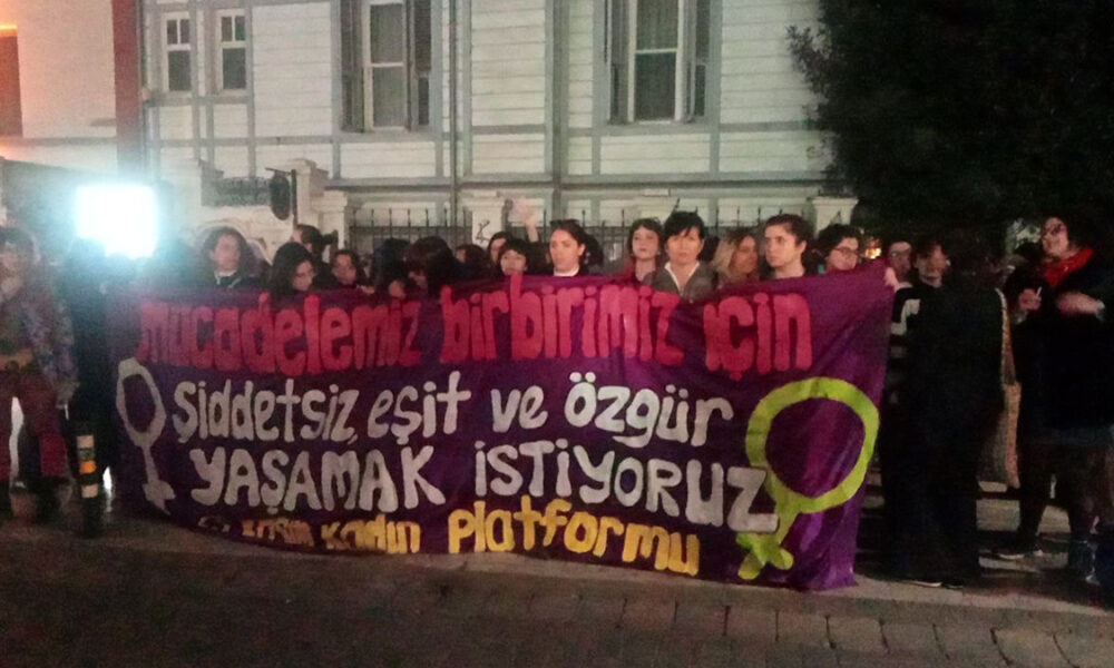 Kadınlar Birlikte Güçlü, 25 Kasım yaklaşırken “Erkek Şiddetine Karşı Sokaklardayız” şiarıyla Kadıköy Süreyya Operası önünde basın açıklaması gerçekleştiriyor