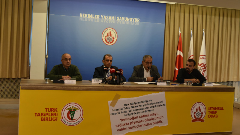 Türk Tabipleri Birliği Merkez Konseyi ve İstanbul Tabip Odası, bebekleri katleden “yenidoğan çetesine” ilişkin basın toplantısı düzenledi. Cağaloğlu’nda bulunan İstanbul Tabip Odası binasında düzenlenen toplantıda, TTB MK Başkanı Alpay Azap, TTB MK üyesi Ali Karakoç, İstanbul Tabip Odası Başkanı Osman Küçükosmanoğlu ve İstanbul Tabip Odası Genel Sekreteri Ertuğrul Oruç yer aldı.
