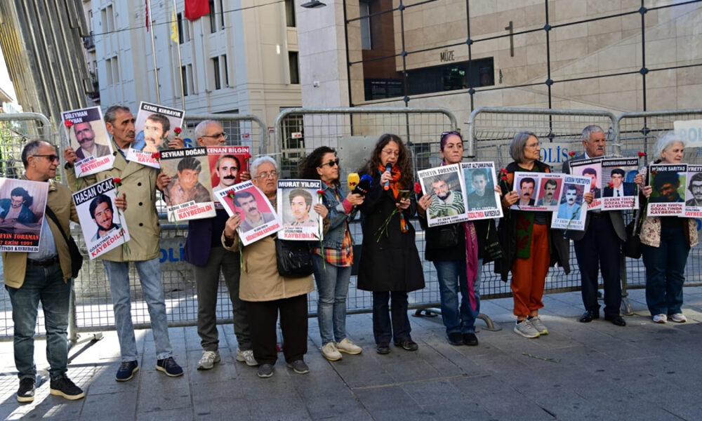 Galatasaray Meydanı’nda bir araya gelen kayıp yakınlarının bu haftaki açıklamasını Oya Ersoy okudu.