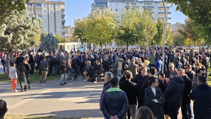 Özgür Kadın Hareketi, Demokratik Bölgeler Partisi ve Halkların Eşitlik ve Demokrasi Partisi Amed İl Örgütleri, belediye eşbaşkanları, çok sayıda kurum temsilcisi Rojava Parkı’nda bir araya geldi. Polisler tarafında ablukaya alınan kitle durumu alkışlarla protesto etti.