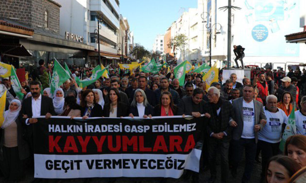 DEM Parti, DBP ve TJA, Mardin Büyükşehir Belediyesi’ne atanan kayyıma karşı, Karayolları Parkı’nda kitlesel bir katılımla açıklama yapmak için DEM Parti il binası önünde bir araya geldi. Toplanan binlerce kişi yürüyüşe geçti.