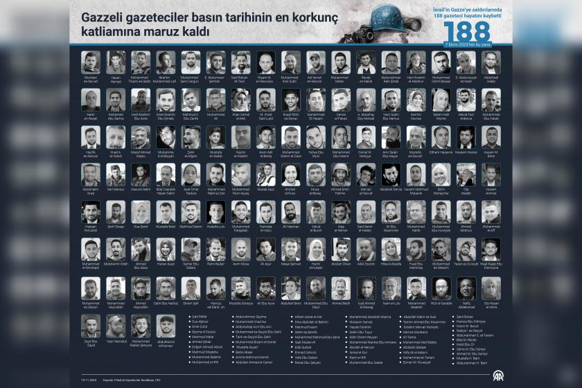 Medya Ofisinden 9 Kasım’da yapılan açıklamada, 7 Ekim 2023’ten beri İsrail’in 188 gazeteciyi öldürdüğü, 396’sını yaraladığı ve 40’ını alıkoyduğu bildirilmişti.