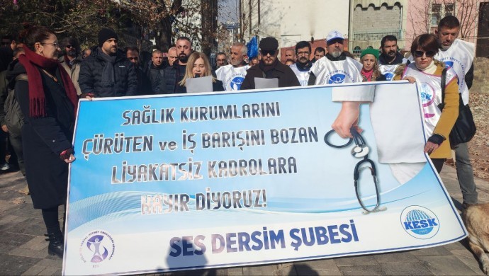 SES, Dersim’de sağlık kurumlarında liyakatsiz atamalara ve mobingi protesto ederek mücadeleyi sürdüreceklerini belirtti.