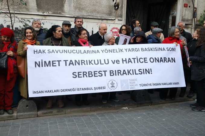 İnsan Hakları Haftası kapsamında, İnsan Hakları Derneği (İHD) ile Türkiye İnsan Hakları Vakfı (TİHV), hapishanede tutulan hak savunucuları Nimet Tanrıkulu ve Hatice Onaran için İHD İstanbul Şubesi önünde basın açıklaması gerçekleştirdi. Açıklamada “Hak savunucularına yönelik yargı baskısına son/ Nimet Tanrıkulu ve Hatice Onaran serbest bırakılsın” pankartı açılarak, “Nimet, Hatice serbest bırakılsın”, “Yargı tacizine son”, “Biz susmadık susmayacağız”, “İnsan haklarıyla insandır” sloganları atıldı.
