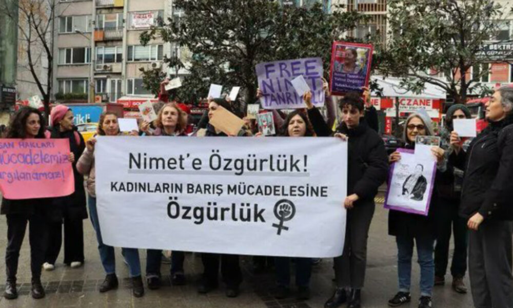Kadınlar, tutuklanan İHD kurucu üyesi Nimet Tanrıkulu’na Şişli Meydanı’nda eylem yaparak dayanışma kartı gönderdi.