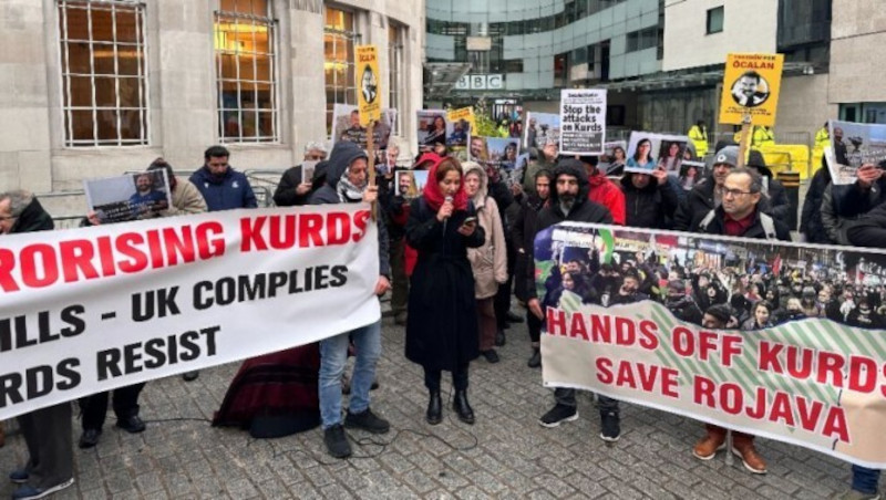 Britanya Kürt Gazeteciler İnisiyatifi ve Kürt Halk Meclis’inin çağrısıyla Londra BBC binası önünde Cihan Bilgin ve Nazım Daştan’ın katledilmesi protesto edildi.