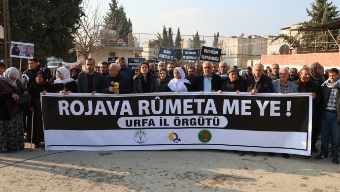 DEM Parti Riha Milletvekili Ferit Şenyaşar ise, “2014’te nasıl Kobanê’yi savunduysak yine savunacağız. Kobanê için binlerce insan yaşamını yitirdi. Kobanê’dekiler bizim akrabalarımız. Dünya Kobanê’yi direnişi ile tanıdı. Türkiye sadece bu destanı görmedi ve çeteleri ile saldırma girişiminde bulundu. Gazeteciler SİHA ile katledildi. Onlar hakikat yolunda yürüdü, biz de onların yolunu izleyeceğiz. Biz barış istiyoruz. Kobanê’ye dönük saldırılar son bulana kadar eylemimiz devam edecek” ifadelerini kullandı.