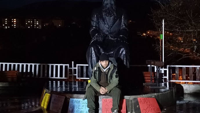 Munzur Üniversitesi öğrencisi Ahmet Yıldız, Dêrsim Belediyesi’ne 22 Kasım’da atanan kayyıma karşı düzenlenen eylemelere katıldığı gerekçesiyle 17 Aralık’ta gözaltına alındı. Serbest bırakılan Yıldız hakkında kıyafetleri üzerinde Sovyet Sosyalist Cumhuriyetler Birliği (SSCB) bayrağı ve Mao Zedung arması bulunması gerekçe ile başlatılan soruşturma kapsamında “Örgüt propagandası yapma” iddiasıyla iddianame hazırlandı. İddianamede SSCB armasının Komünist Partisi/Marksist-Leninist (TKP/ML) logosunu andırması gerekçe gösterilerek, “örgüt propagandası” yaptığı iddia edildi. Tunceli 2. Ağır Ceza Mahkemesi tarafından kabul edilen iddianame kapsamında Yıldız’ın duruşması dün görüldü.