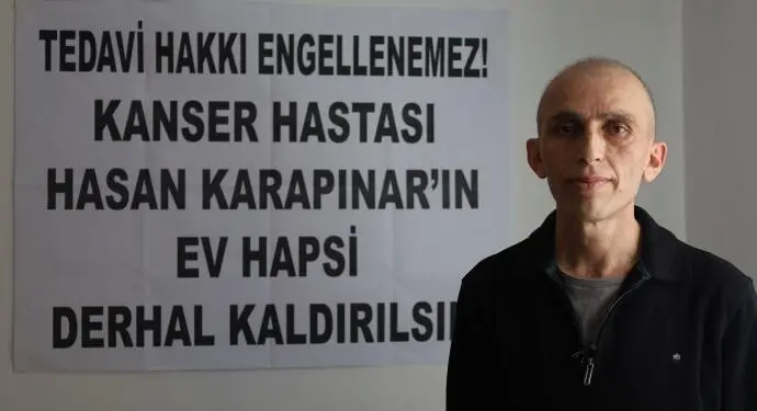 Toplamda 3 kez kemoterapi için hastaneye yatışının yapıldığını her biri için özel izin alındığını hastanede kapıda sürekli polisin beklediğini ifade eden Hasan Karapınar, “Ev hapsi her şeye engel, ben sadece onurlu bir tedavi hakkı istiyorum” diye konuştu.