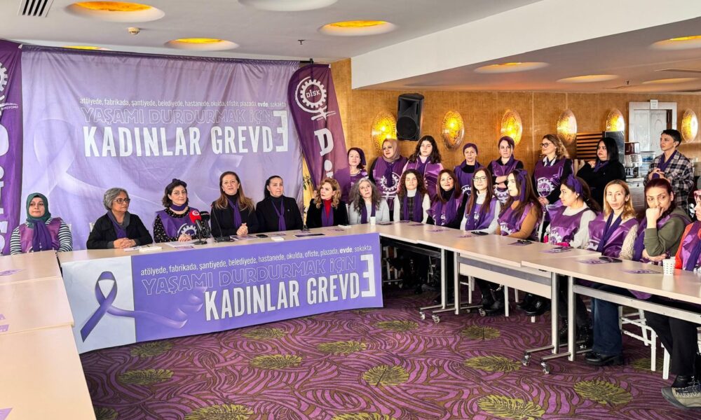 Türkiye Devrimci İşçi Sendikaları Konfederasyonu-DİSK Kadın Komisyonu, bugün düzenlediği basın açıklamasıyla 7 Mart’ta greve çıkacağını duyurdu. DİSK Genel Başkanı Arzu Çerkezoğlu, “Yüksek enflasyon ve geçim derdi en fazla kadınları etkiliyor. Tüm yaşadığımız sorunları, bütün taleplerimizi açık bir biçimde ortaya koyan ve 3 temel taleple ne iş yapıyorsak nerede olursak olalım işimizi bırakıp meydanlarda buluşma kararı aldık” dedi.