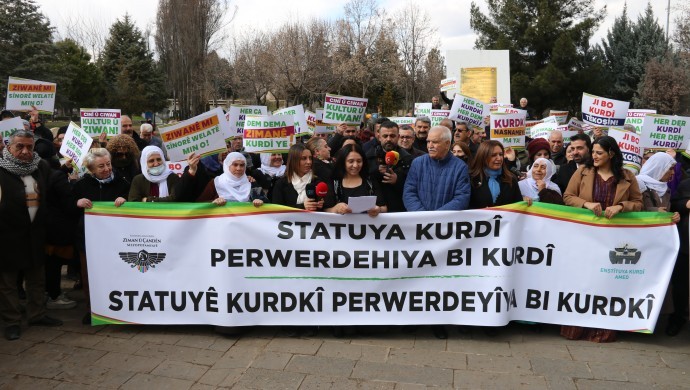 Kürt dili ve eğitim hakkının vazgeçilmez olduğunu belirten Yaray, “Bu temelde; devlete, Kürt dilinin önündeki tüm engellerin kaldırılması, Kürtçenin hayatın her alanında, tüm sosyal, kamusal ve resmi alanlarda özgür olması, Kürtçenin bir statü kazanması, resmi dil haline gelmesi, Kürtçe tüm hakların temel yasada yer alması, okul öncesinden üniversiteye kadar Kürtçe eğitim olması çağrısında bulunuyoruz” dedi.
