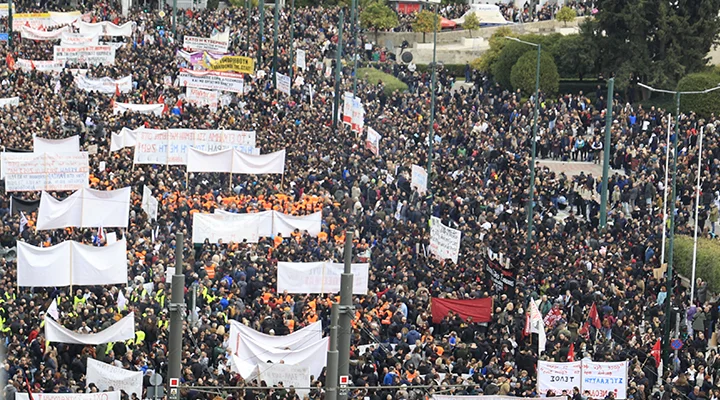 Yunanistan’da 57 kişinin hayatını kaybettiği Tembi tren kazasının yıl dönümünde özelleştirme politikalarına ve hükümetin suçları örtbas etme girişimine karşı sendikaların genel grevi başladı.