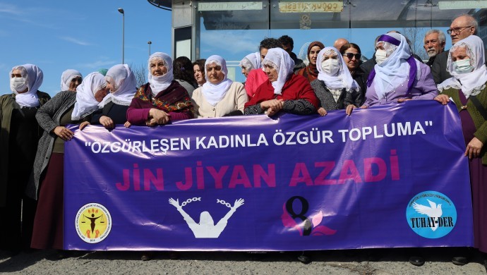 Barış Annesi Sabiha Bozan, kadın tutsakların çok zor durumda olduğunu belirterek, “Kadınlar her yerde eziliyor. İşyerlerinde önce erkeklere önem veriliyor. Kadınlar 2’nci sırada görülüyor. Ancak biz eşitlik diyoruz, eşitlik istiyoruz. Bu yıl barış için bir çağrı yapıldı. Biz de inanıyoruz bu barış olacak ve bütün kadınlar serbest bırakılacaktır. ‘Jin jiyan azadî'” dedi.