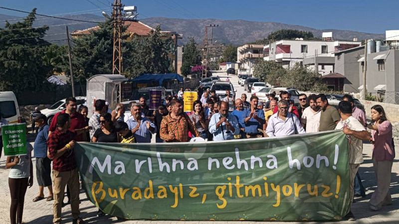 Dikmece’de 6 Şubat sonrası TOKİ konutları için tarım alanlarının bir kısmının kamulaştırılarak, bir kısmının olağanüstü hal gerekçesiyle el konulduğu belirten açıklamada, “Bugün Antakya-Dikmece’nin aşağı Kuyucak mahallesinde, adının anlattığı gibi aslında toprağının yerleşime değil, tarıma uygun olduğu binlerce dönümlük tarım alanlarında gerçekleşen ekokırım sonucunda 7000 TOKİ konutu tamamlanmış durumda. Şimdi Dikmece’de ekokırım alanı genişletiliyor. Zeytin yasasına rağmen zeytin tarlalarına girilerek zeytini ve zeytinyağıyla meşhur Dikmece’nin zeytinlikleri yok ediliyor. Zeytinliklere ulaşmak için buğday ekilmiş tarlaların üzerine toprak dökülerek yol yapıldığını anlatıyor Dikmeceliler. Şirket elinde Hatay Valiliğinin 12 Mart’ta verdiği geçici el koyma belgesiyle Jandarmayı da yanına alarak mülk sahiplerinin haberi olmadan zeytin ağaçlarını söküyor. Karşı çıkan mülk sahipleri darp ediliyor, göz altına alınıp ertesi gün serbest bırakılıyor. Antakya’nın Dikmece mahallesinde kamulaştırma dahi yapılmadan buğday tarlaları yol için kullanılıyor, zeytinlikler yok ediliyor” ifadeleri yer aldı.