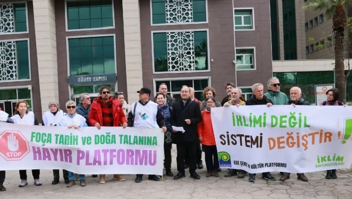 Foça Tarih ve Doğa Talanına Hayır Platformu ile Ege Çevre ve Kültür Platformu (EGEÇEP), İzmir’in Aliağa ilçesinde bulunan İzdemir Termik Santrali için verilen “Çevresel Etki Değerlerdirmesi (ÇED) olumlu” kararının iptal edilmesi için davası açtı. Ekolojistler dilekçeleri verdikten sonra İzmir Bölge Adliyesi önünde açıklama yaptı. “İklimi değil sistemi değiştir” pankartı açılan açıklamaya çok sayıda kişi katıldı.
