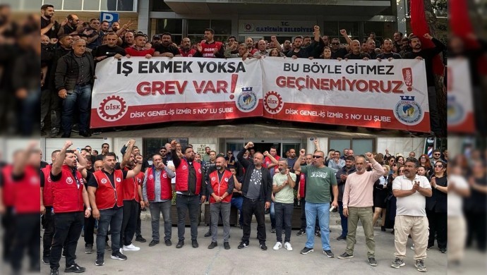 Konak ve Gaziemir belediyelerinde toplu iş görüşmelerinden sonuç alınmaması üzerine işçiler iş bırakma eylemine başladı.