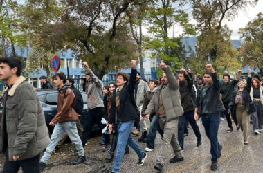 Eskişehir’de üniversite öğrencileri, Ali İsmail Korkmaz anmasına yönelik polis ve ÖGB şiddetine tepki gösterdi. Yürüyüş yapan öğrenciler, rektörlük binasının olduğu alana Ali İsmail Korkmaz pankartı astı.