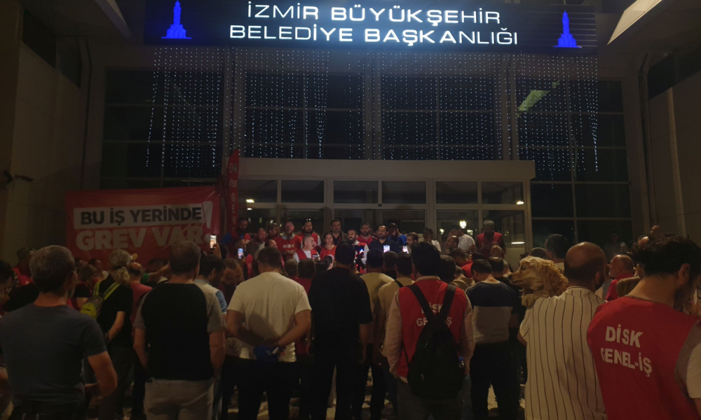 İzmir Büyükşehir Belediyesine ait İZELMAN, İZENERJİ ve Egeşehir’de 23 bin işçiyi ilgilendiren toplu iş sözleşmesinde anlaşma sağlanamaması üzerine işçiler greve çıktı.