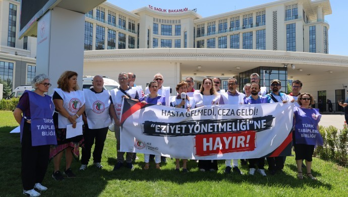 TTB, “Eziyet Yönetmeliğine Hayır” çağrısıyla Sağlık Bakanlığı önünde gerçekleştirdiği basın açıklamasında sağlıkta yaşanan sorunları sıraladı.