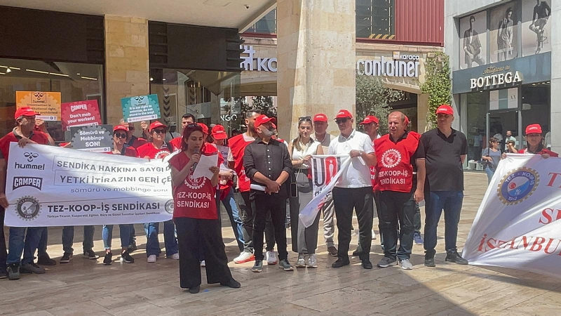 Tez-Koop-iş, Viaport Asya AVM önünde Hummel ve Camper patronlarına seslendi, yetki itirazının geri çekilmesini istedi.