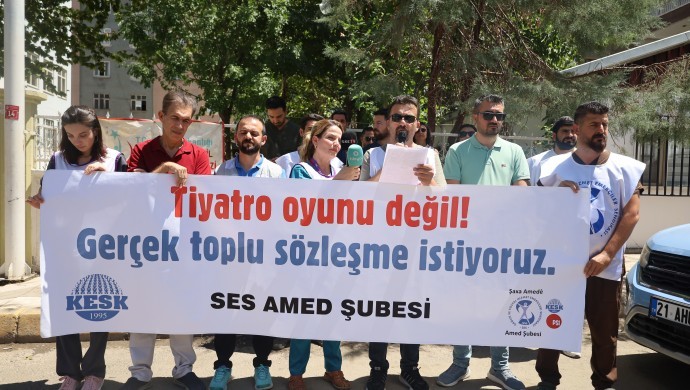 Sağlık Emekçileri Sendikası Diyarbakır Şubesi, Bağlar ilçesi Şeyhşamil Mahallesi Aile Sağlığı Merkezi önünde Toplu İş Sözleşmeleri taleplerini sıraladı. “Tiyatro oyunu değil gerçek toplu sözleşme istiyoruz” pankartının açıldığı eylemde konuşan Şeyhşamil ASM İşyeri Temsilcisi Ahmet Baran, Türkiye’nin sağlık sistemine ilişkin sorunlarının her geçen gün derinleştiğini vurguladı.