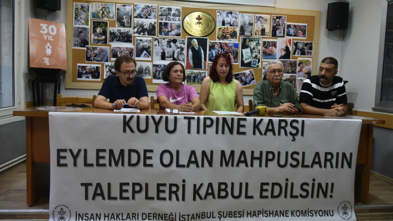 İnsan Hakları Derneği (İHD) İstanbul Şubesi Hapishane Komisyonu, kuyu tipi hapishanelere ve ölüm orucu ile açlık grevindeki tutsakların durumuna ilişkin dernek binasında basın toplantısı düzenledi.