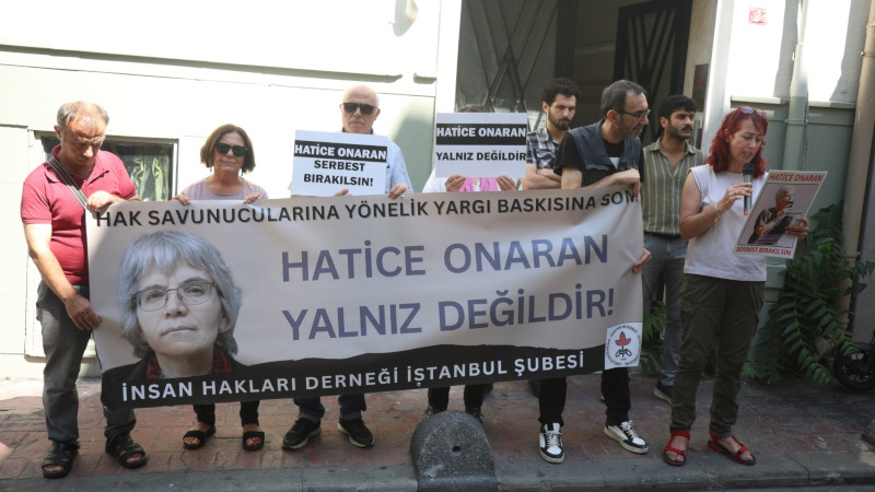 İnsan Hakları Derneği (İHD), tutsaklara para yatırdığı için tutsak edilen üyeleri Hatice Onaran’ın serbest bırakılması talebiyle Beyoğlu’nda bulunan dernek binası önünde yan yana geldi. “Hatice Onaran yalnız değildir” pankartı açılan eylemde, “Hatice Onaran serbest bırakılsın” dövizleri taşındı.