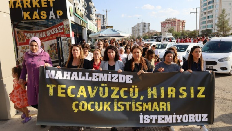 Diyarbakır’ın Yenişehir ilçesine bağlı TOKİ Üçkuyular’da, Özgür Kadın Hareketi (TJA) öncülüğünde çocuklara ve kadınlara yönelik saldırılara karşı yürüyüş düzenlendi. Yürüyüşe Halkların Eşitlik ve Demokrasi Partisi (DEM Parti) Kadın Meclisi Sözcüsü Halide Türkoğlu, Demokratik Bölgeler Partisi (DBP), Barış Anneleri ve çok sayıda kadın katıldı. “Mahallemizde tecavüzcü, çocuk istismarcısı, hırsız itemiyoruz” pankartı açılan eylemde sık sık, “Jin jiyan azadi” sloganı atıldı.