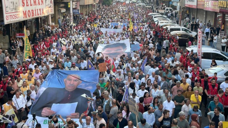 Yürüyüşe, Demokratik Bölgeler Partisi (DBP) Eş Genel Başkanı Kesin Bayındır ve DEM Parti’li milletvekilleri, demokratik kitle örgütü temsilcileri ve binlerce kişi katıldı. Öcalan’ın posterini taşındığı yürüyüşte kitle sık sık “Bijî serok apo” sloganı attı.