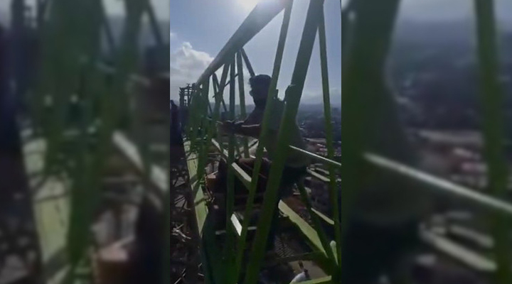 Antakya’da deprem konutlarında çalışırken maaşlarını alamayan kule vinç operatörleri kule vince çıktı.