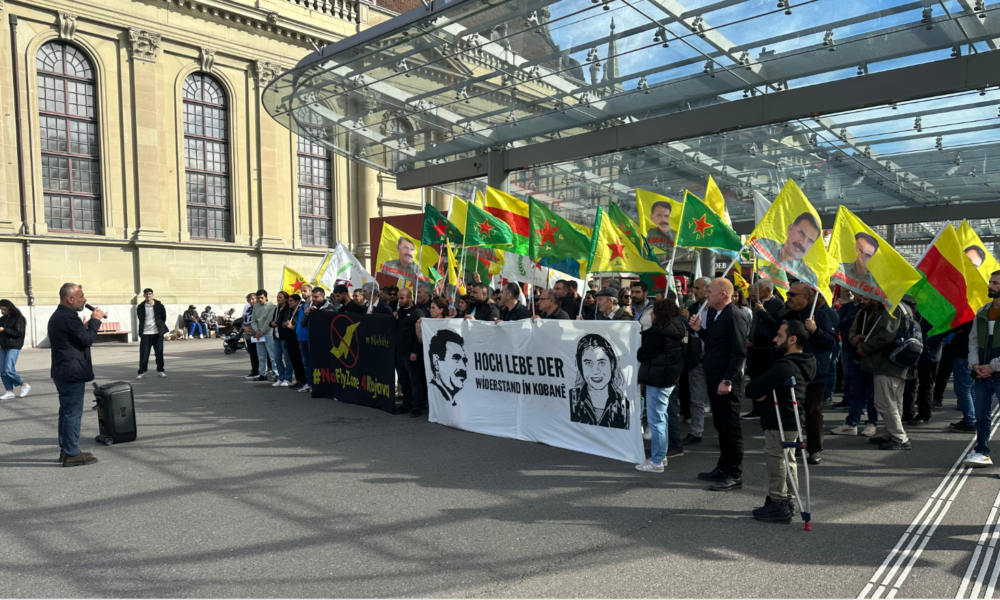 İsviçre’nin Bern kentinde CDK-S ve YJK-S’nin çağrısıyla toplanan Kürt halkı, HTŞ çetelerinin Halep’teki Şêxmeqsûd ve Eşrefiyê mahallelerine yönelik saldırıları protesto etti.