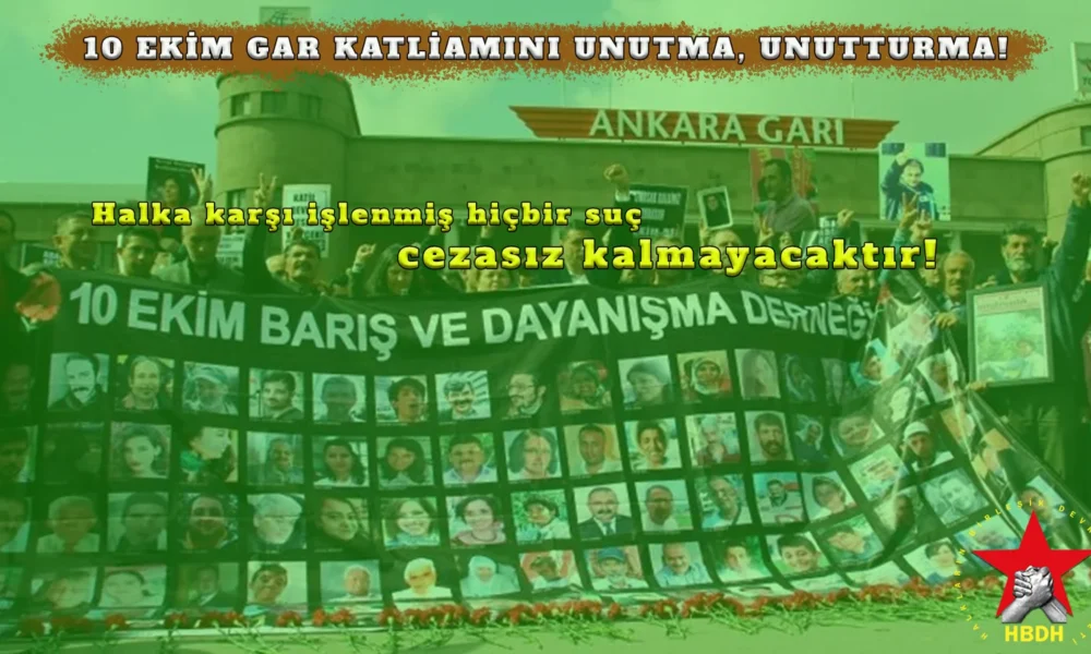 10 Ekim Ankara Garı Katliamı’nın 10. yıl dönümündeyiz.Tarihler 10 Ekim 2015’i gösterdiğinde, faşist Türk devletinin katliam suçlarına bu kez de AKP iktidarı eliyle bir yenisi daha ekleniyordu. Ankara’ya akın eden on binlerin barış talebine, faşist AKP iktidarı savaş ilanıyla karşılık veriyordu. 104 kişinin katledildiği, yüzlerce kişinin ise yaralandığı katliamın gerçek sorumluları, aradan geçen on yıla rağmen korunmaya devam ediyor. Tıpkı devletin sorumlu olduğu diğer yüzlerce katliamda olduğu gibi.