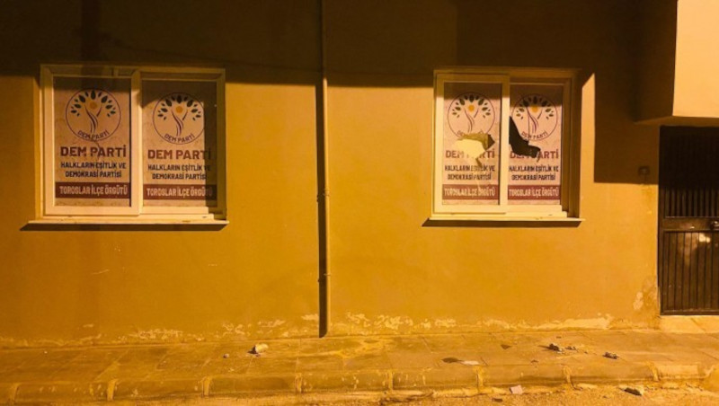 Mersin’de Halkların Eşitlik ve Demokrasi Partisi (DEM Parti) Toroslar İlçe Örgütü binasına dün gece saatlerinde taşlı saldırı gerçekleştirildi.