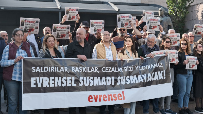 Duruşma öncesi İzmir Adliyesi önünde basın açıklaması düzenledi. Açıklamaya, çok sayıda siyasi parti, sendika, demokratik kitle örgütü temsilcisi katıldı. Eylemde, “Saldırılar, baskılar, cezalar bizi yıldıramaz. Evrensel susmadı susmayacak” pankartı açıldı.
