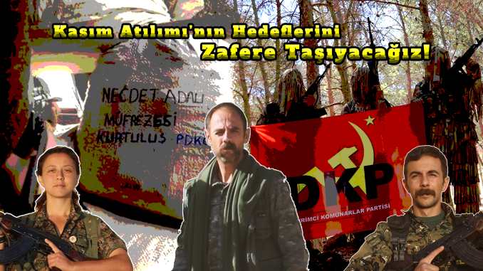 Bütün parti üyelerimize, sempatizanlarımıza, ölümsüzlerimizin ailelerine ve bütün halkımıza çağrımız; Kasım Atılımı’nın açtığı ışıklı yolda yürüyen partimizin etrafında daha güçlü bir şekilde kenetlenmeleri ve onun zafere yürüyüşünü güçlendirmeleridir.