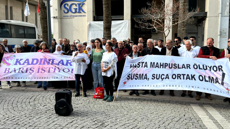 İnsan Hakları Derneği (İHD) İzmir Şubesi Hapishane Komisyonu ve Kadın Komisyonu, 25 Kasım’a giderken düzenlediği 366. hafta eyleminde kadın hasta tutsakların durumuna dikkat çekti. Konak’ta bulunan eski Sümerbank önünde yan yana gelen çok sayıda kişi, “Kadınlar barış istiyor” ve “Hasta mahpuslar ölüyor. Susma, suça ortak olma” pankartları açılırken basın metnini Vetha Aydın Yüksel ve Gülay Bilici okudu.