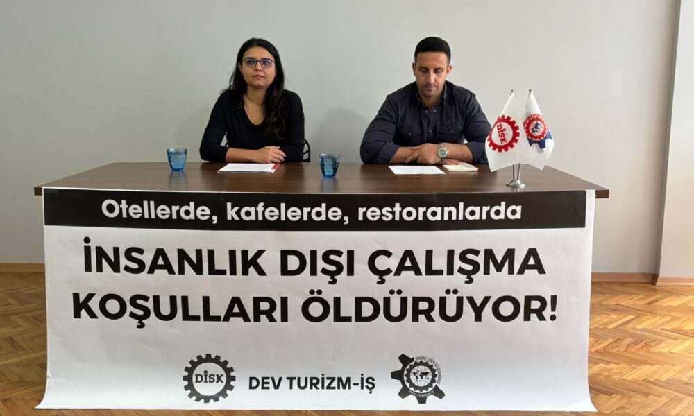 DİSK/Devrimci Turizm İşçileri Sendikası, otellerde, restoranlarda, kafelerde son günlerde ardı ardına yaşanan yangınlar, zehirlenmeler sonucu meydana gelen can kayıplarıyla ilgili basın toplantısı düzenledi.