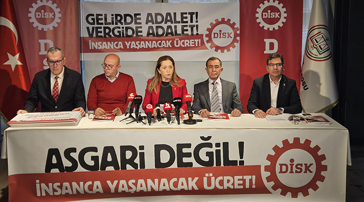 Devrimci İşçi Sendikaları Konfederasyonu (DİSK) bu ay toplanacak Asgari Ücret Tespit Komisyonu öncesi, asgari ücrete ilişkin taleplerini açıklamak için İstanbul Barosu’nda basın düzenledi. Basın toplantısında konuşan DİSK Genel Başkan Arzu Çerkezoğlu, enflasyon tek haneli rakamlara düşene kadar asgari ücret yılda en az iki kez güncellenmesi gerektiğini belirterek, hedeflenen enflasyon kadar ücret artışı dayatmasının kabul edilemez olduğunu söyledi.