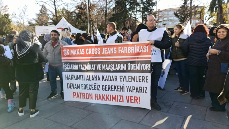 Şık Makas (Cross Jean) işçileri, ödenmeyen alacakları ve kıdem tazminatları için Çorlu’da eylem yaptı. Şirketin kapanarak üretimi Mısır’a taşımaya başlamasının ardından 2024 Kasım ayından bu yana parça parça yaklaşık bin 500 işçi işten çıkarıldı. Patron, işçilerin kıdem ve ihbar tazminatları ile maaş, ikramiye ve izin alacaklarını 8 taksite bölerek ödeyeceğini bildirdi. Ancak birçok işçiye yalnızca bir ya da iki taksit ödendi, ardından ödemeler kesildi. Son işten çıkarılan işçiler ise hiçbir ödeme alamadı.