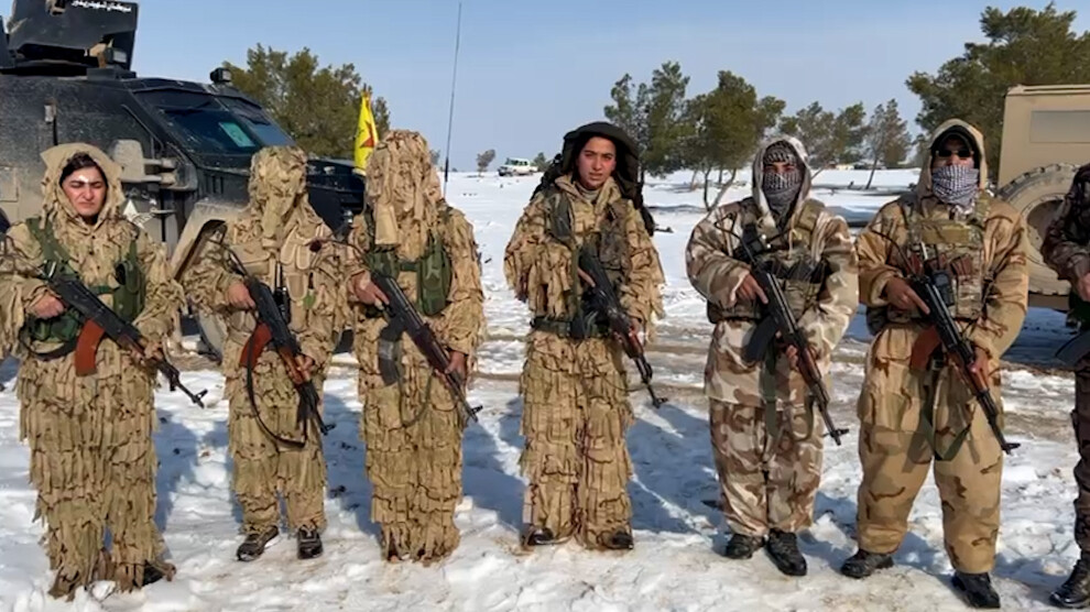 Hesekê ve Reqa arasında Hesekê’ye 20 km uzaklıkta bulunan Til Barût köyündeki direniş cephelerinde bulunan QSD ve YPJ savaşçıları, dört parça Kürdistan ve Avrupa’daki halklara görüntülü mesaj verdi.
