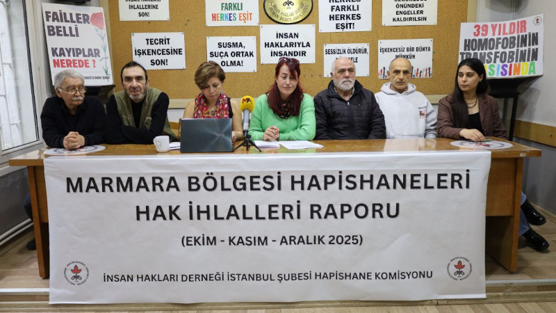 İHD İstanbul Şubesi Hapishane Komisyonu, Ekim, Kasım, Aralık 2025 döneminde Marmara Bölgesi hapishanelerinde yaşanan hak ihlallerine ilişkin raporunu yayımladı. Raporda, hapishanelerdeki kapasite fazlalığının yanı sıra, sağlık hakkı ihlallerine, yaygın ve sistematik biçimde sürdürülen işkence ve tecrit uygulamalarına dikkat çekilerek, tutsaklar ve aileriyle dayanışma çağrısı yapıldı.
