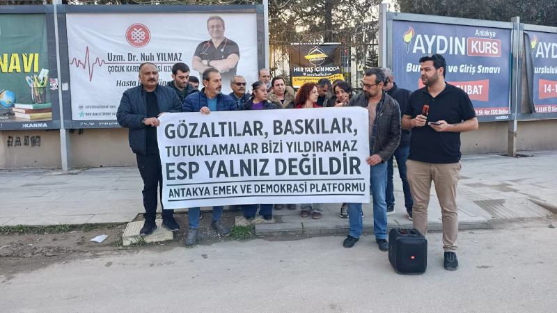 Antakya Emek ve Demokrasi Platformu, sosyalistlere yönelik tutuklama saldırılarıyla ilgili gerçekleştirdiği açıklamada “Gözaltı ve tutuklamalar yoluyla topluma gözdağı verilmesine derhal son verilmeli, tutuklanan herkes derhal serbest bırakılmalıdır” dedi.